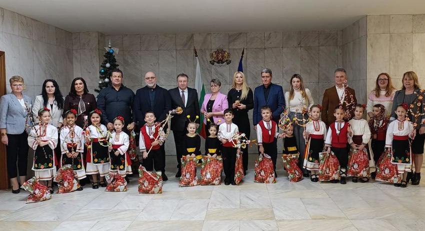 Децата от градината представиха народния обичай сурвакане и пожелаха на целия кметски екип здраве, успехи и благоденствие. За всеки ресорен зам.-кмет имаше подготвено и тематично наричане. Програмата включваше песни, танци и стихове, които допринесоха за настроението.