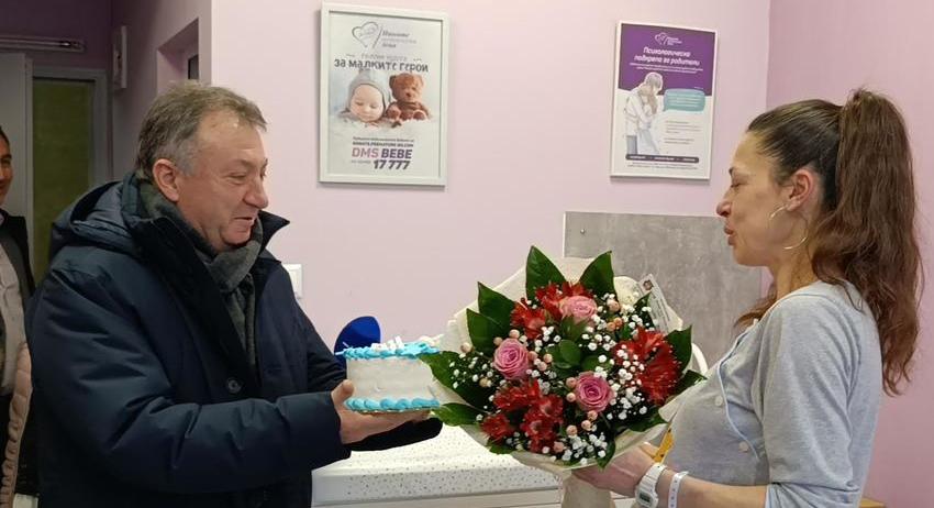 Кметът проф. Христо Христов поздрави първата родилка за 2026 г. в Шумен. Той й подари торта, букет и паричен ваучер за нейните близнаци – Йордан и Юлий. Кметът пожела на семейството здраве, успехи и всичко най-добро на двете момчета.
